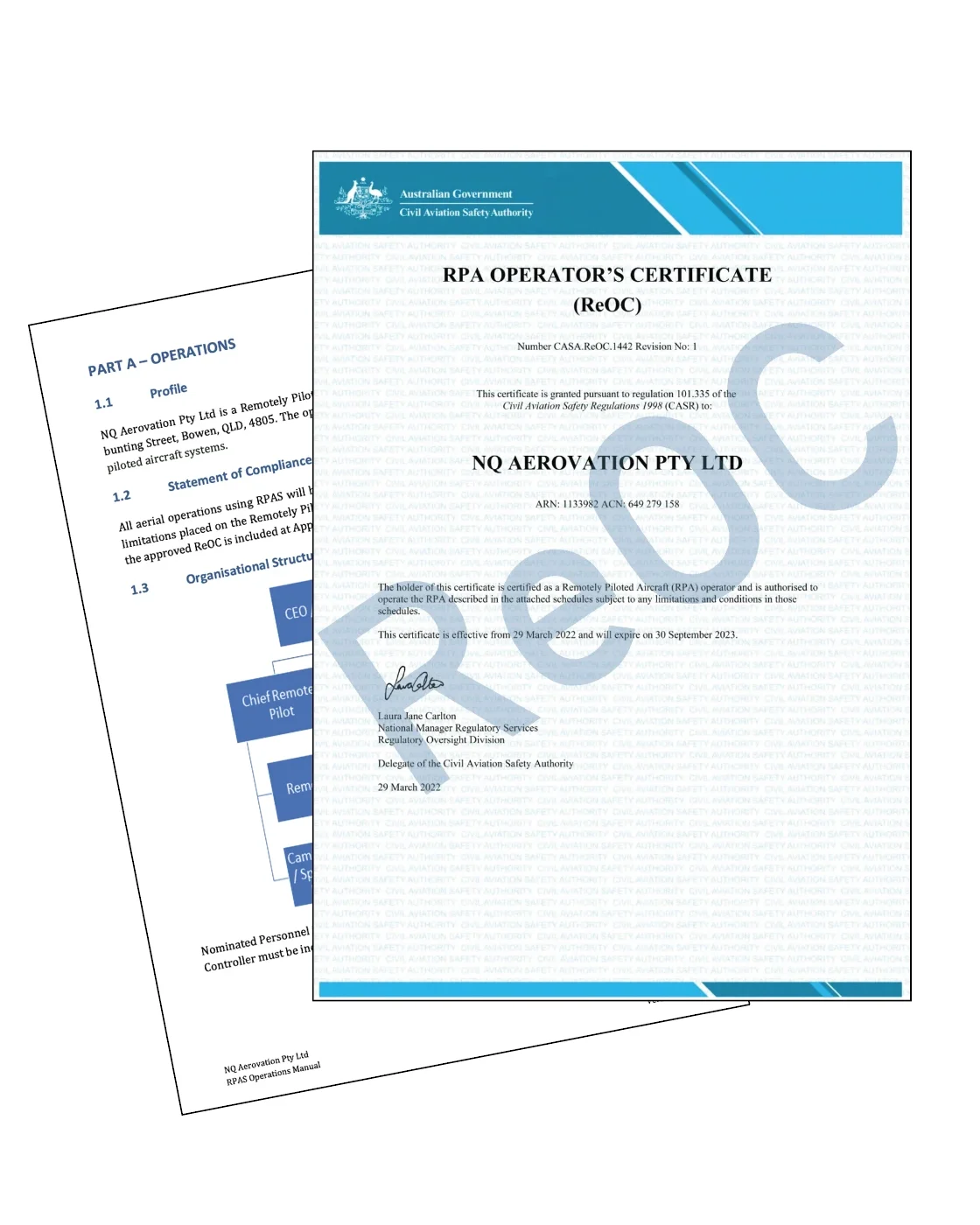 Issued by the Civil Aviation Safety Authority (CASA), a ReOC is required for businesses operating drones commercially for hire or reward. A ReOC allows you to apply for permissions and approvals for complex drone operations outside the standard safety rules. If you are planning to operate commercially – you will need a ReOC.